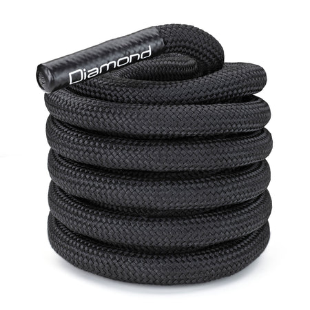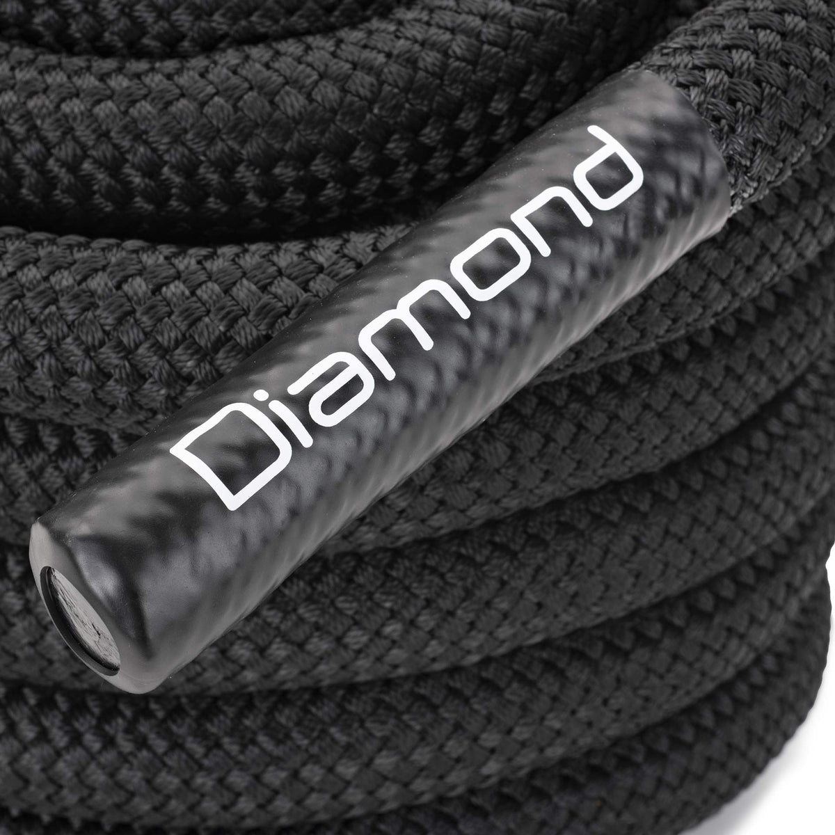La battle rope è uno degli accessori più utilizzato nelle classi di CrossFit® e nelle preparazioni atletiche di atleti di numerose e varie attività sportive. La particolarità di questa nuova versione è la sua composizione che – a differenza della sua più classica versione in in poliestere, nylon e sisal – propone un’anima in filati ritorti ed un rivestimento in fibra di poliestere ad alta tenacità aumentando sensibilmente la fluidità della corda. Le impugnature rivestite in gomma termoretraibile, garantiscono una valida soluzione per le mani e rendono la presa salda e sicura durante l’allenamento. La Battle Rope Diamond da 12 metri è perfetta per chi inizia l’allenamento con le funi, in particolar modo per il potenziamento dei muscoli superiori e l’allenamento cardio respiratorio. Risulta essere quindi un attrezzo molto utile per gli esercizi di condizionamento metabolico e nella sua semplicità garantisce un allenamento unico e particolare.