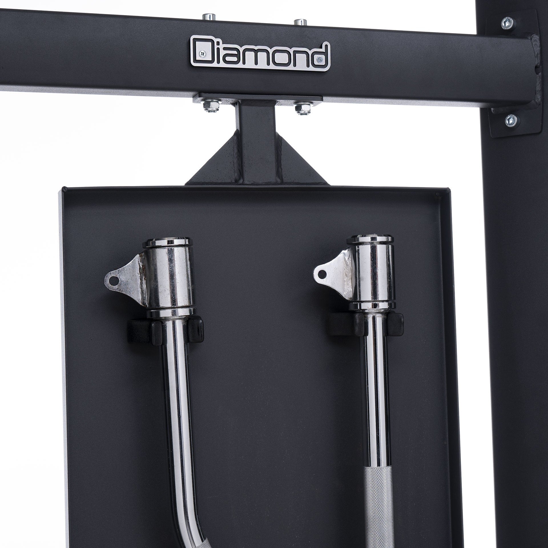 Il design del Cable Cross Rack Master Diamond Professional è studiato per garantire la massima stabilità e sicurezza durante l'uso. Realizzato con materiali di alta qualità, offre una struttura robusta e resistente che assicura una lunga durata nel tempo. Le sue finiture di pregio e la cura nei dettagli lo rendono non solo funzionale ma anche esteticamente gradevole, perfetto per qualsiasi palestra o centro fitness.
