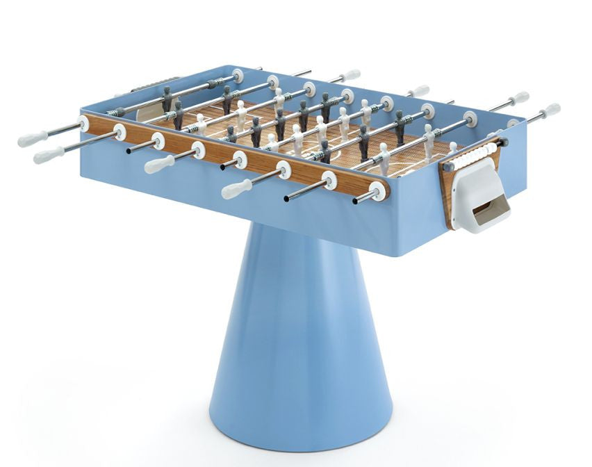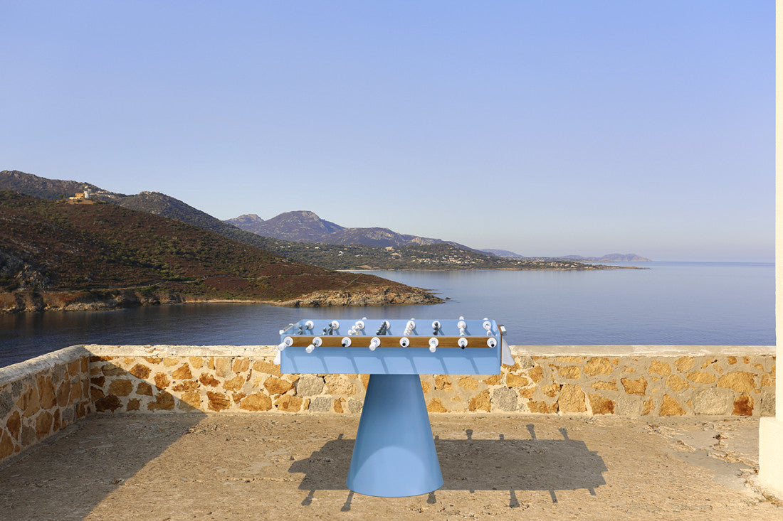 Il calciobalilla è il gioco che simula una partita di calcio su un tavolo per accompagnare le vostre serate in famiglia e con gli amici all'aria aperta. Il Calciobalilla Fas CICLOPE da esterno ha una forma unica nel suo genere: sono state abbandonate le caratteristiche "gambe da tavolo" e adottata questa base conica, capace di dare stabilità ed eleganza al prodotto. I materiali utilizzati sono tutti resistenti agli agenti atmosferici, rendendolo adatto all'utilizzo sia per interni che esterni. I Sostegni per le boccole e le porte sono in legno massello teak trattato per esterno.