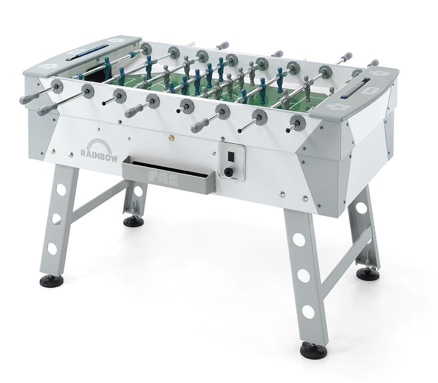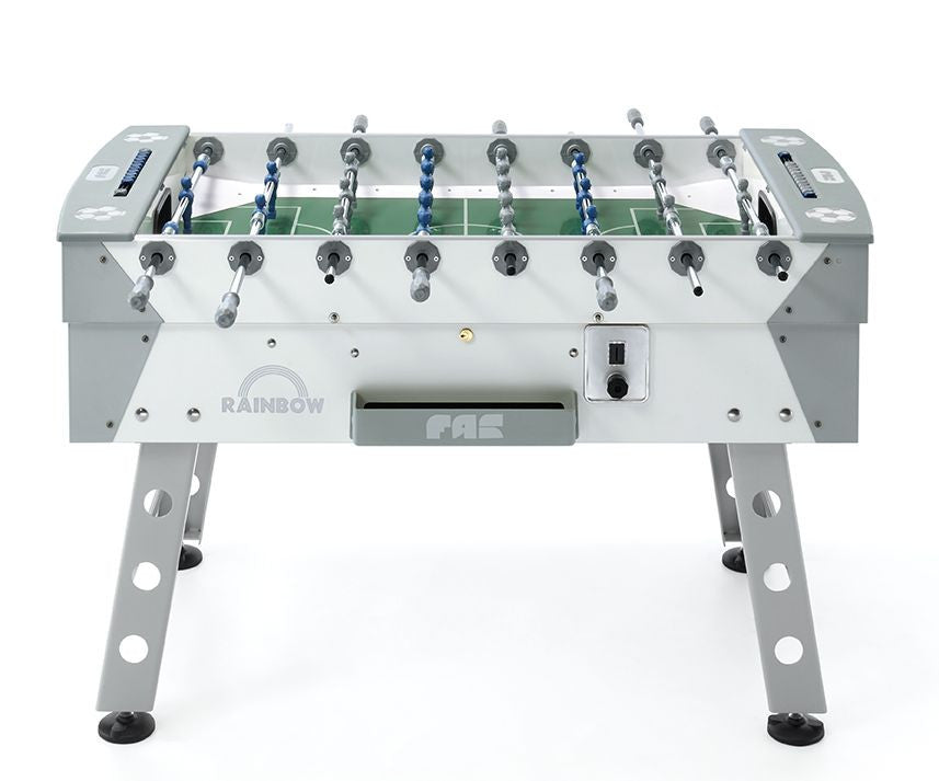 Il Calciobalilla Fas RAINBOW da esterno con gettoniera, ideale in tutti gli spazi all’aperto, quali, dehors di locali pubblici, spiagge, campings, giardini pubblici e piscine. Il Calciobalilla Fas RAINBOW Bianco è la scelta perfetta per chi desidera un tavolo da calcio balilla che unisca eleganza, robustezza e divertimento. Grazie al suo design moderno e al colore bianco raffinato, questo modello si adatta a qualsiasi ambiente, dall'ufficio ai locali ricreativi, regalando un tocco di stile in ogni spazio.