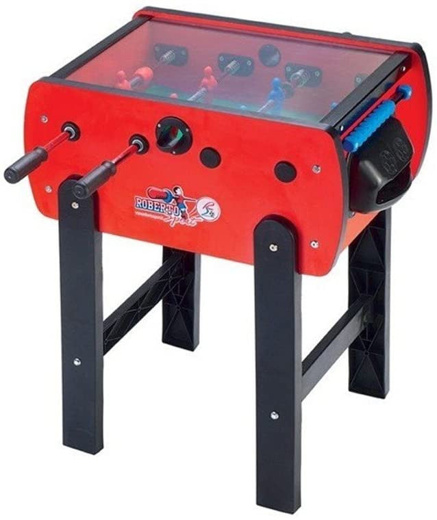 Il calciobalilla è il gioco che simula una partita di calcio su un tavolo ed il Roberto Sport ROBY COVER senza gettoniera con copertura in plexiglass è studiato per adattare la qualità dei modelli professionali ai più piccoli. Ideale per bambini dai 3 ai 6 anni è stato ideato appositamente con copertura per asili, ludoteche, scuole materne ecc. in cui i bambini possono giocare in tutta libertà senza avere la possibilità di accedere al campo gioco con le mani.