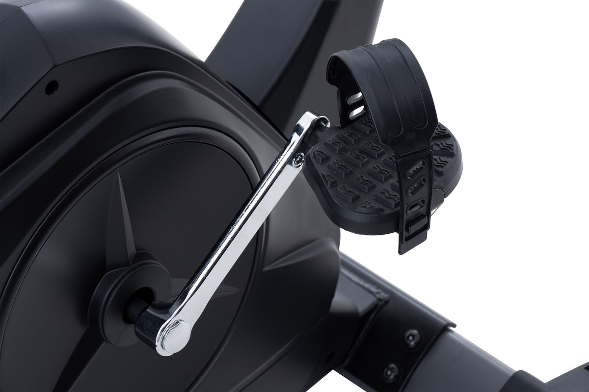 La cyclette JK Fitness 264 è equipaggiata con un volano di 10 kg, che assicura una pedalata fluida, stabile e senza interruzioni. Il sistema di resistenza magnetica è controllato manualmente con 8 livelli, permettendo un'ampia gamma di possibilità per allenamenti personalizzati, dai più leggeri ai più impegnativi. La sella è completamente regolabile in altezza e profondità per garantire una postura ergonomica, mentre il manubrio può essere inclinato per offrire il massimo comfort durante l'esercizio.