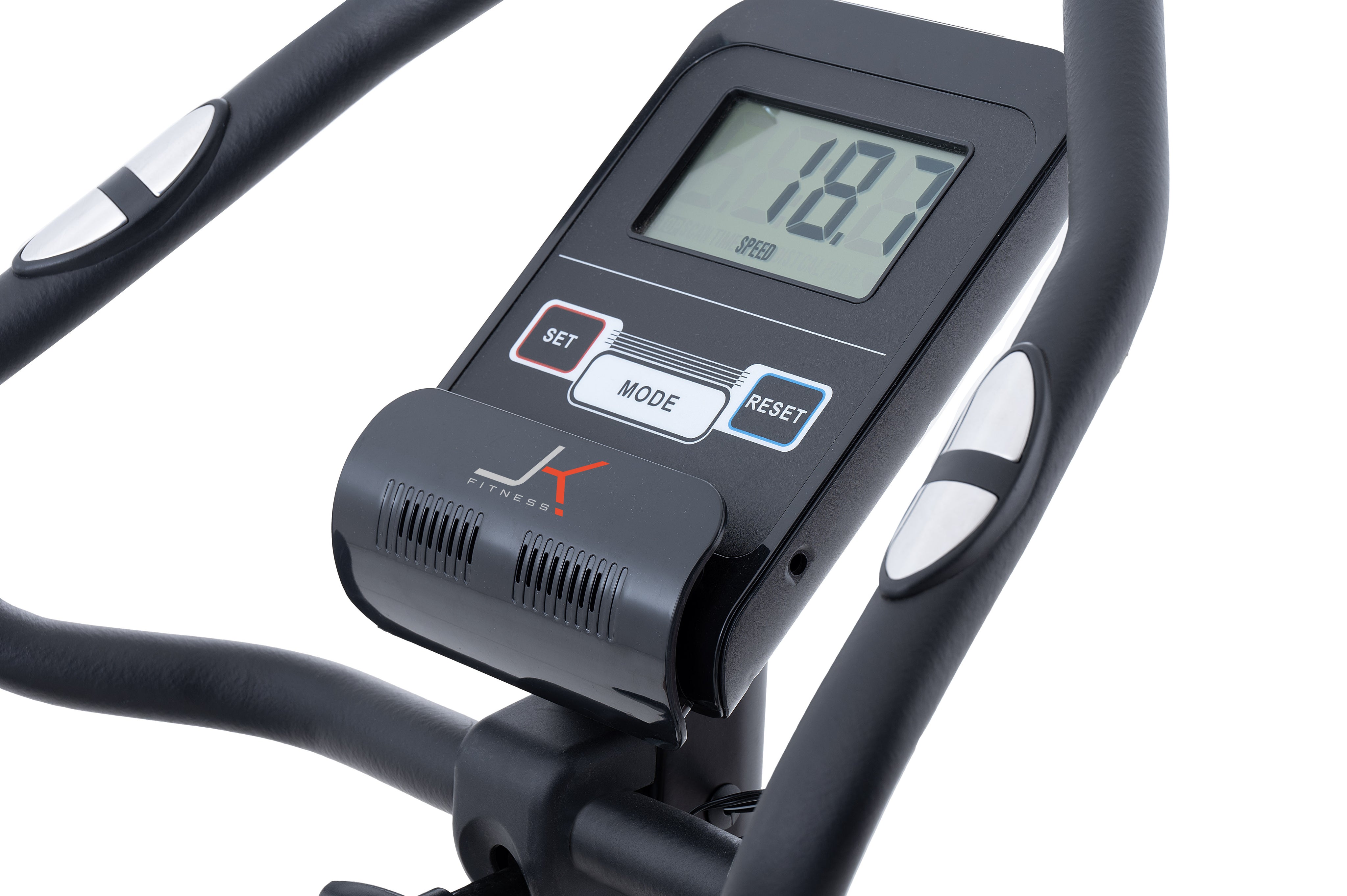 Il display LCD della JK Fitness 264 è intuitivo e facile da usare, fornendo informazioni dettagliate sull'allenamento in corso. È possibile monitorare tempo, velocità, distanza, calorie bruciate, pulsazioni e RPM. Inoltre, questa cyclette è dotata di un sensore per collegare app come Zwift,Kinomap (prodotti con abbonamento non incluso) offrendo un allenamento su misura.