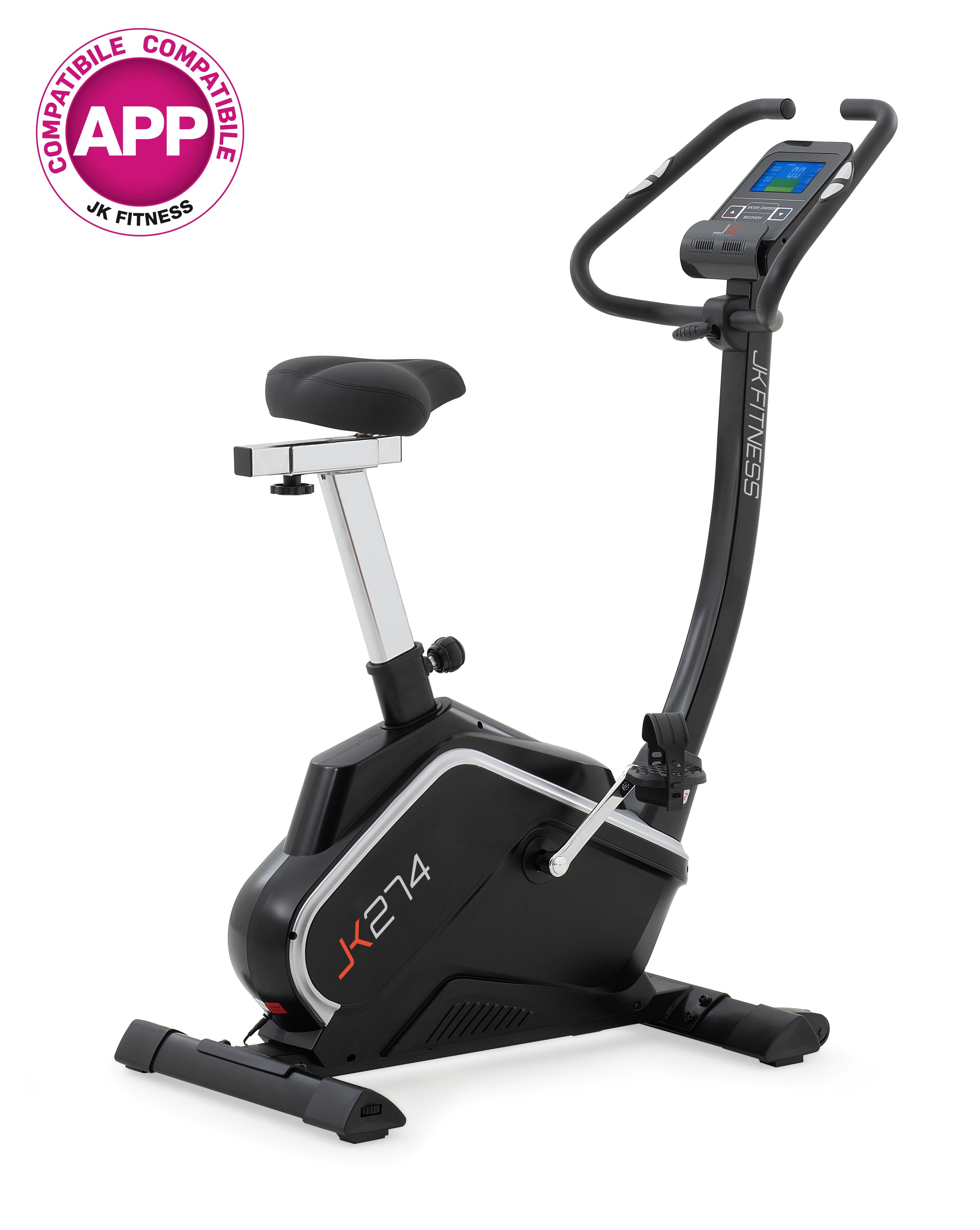 Cyclette JK Fitness 274 è un attrezzo cardio di alta gamma pensato per chi desidera portare il proprio allenamento a un livello superiore senza uscire di casa. Grazie alle sue numerose funzionalità avanzate, offre un'esperienza di allenamento completa