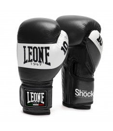 GUANTO LEONE SHOCK GN047, design accattivante, imbottitura ad alto assorbimento e pelle Top Quality. La scelta più apprezzata dai fighters di Boxe, Kick Boxing, Thai Boxe e Savate. Questo guanto è perfetto per un uso professionale, ovvero anche per 5-7 allenamenti a settimana. Il rivestimento interamente in pelle rende questo guanto affidabile per durata e resistenza; l'imbottitura in schiuma multistrato con inserto in lattice garantisce ottima vestibilità e protezione; la chiusura a velcro, comoda e pratica, assicura una calzata confortevole.