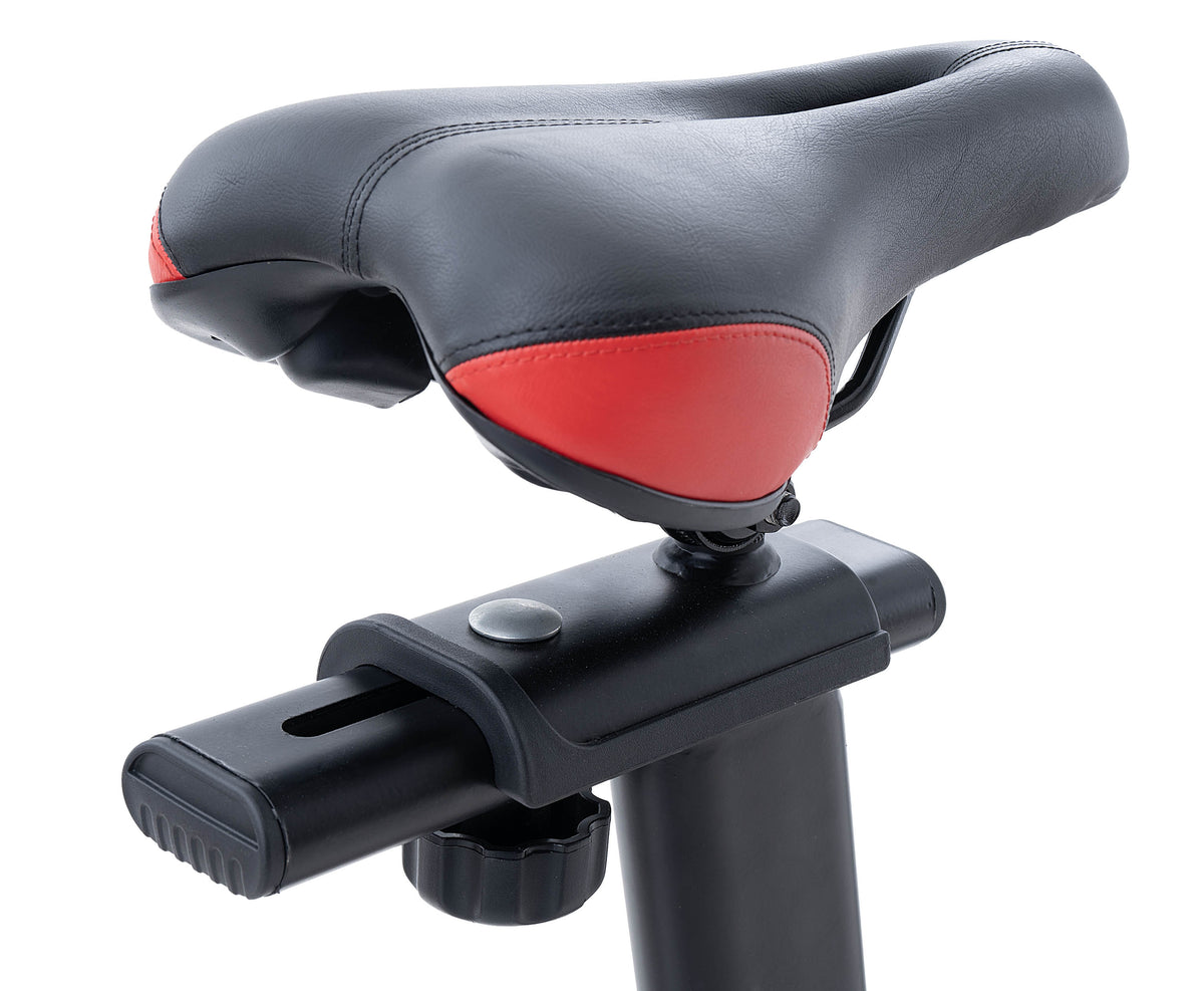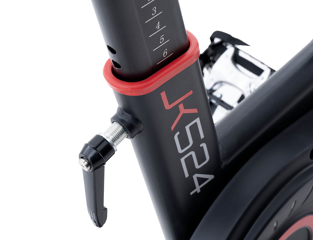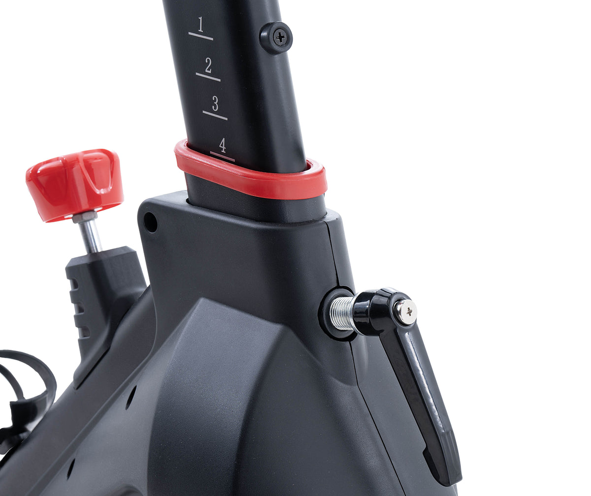 La nuova JK 524 è una spin bike magnetica di fascia media nel mondo home fitness con la trasmissione scatto fisso a cinghia silenziata equipaggiata con un sistema inerziale importante con una massa volanica di 20 kg (volano bilanciato) e una pedivella da 16,5 cm, che permettono una pedalata fluida e senza incertezze a tutte le andature. La regolazione dello sforzo avviene tramite un comando con selettore manuale con resistenza “millimetrica” che funge anche da freno di emergenza in caso di arresti repentini della pedalata da parte dell’utilizzatore. Per un buon comfort l’indoor bike JK 524 ha la regolazione in altezza della sella su 12 posizioni (misura della gamba da 74,5 cm a 90,5 cm) e in profondità 7,5 cm, il manubrio si regola in altezza su 8 posizioni e in profondità 6 cm. Queste regolazioni permettono di trovare sempre la corretta posizione in sella ad ogni utilizzatore, anche a persone molto alte! La sella racing design, anatomica e con foro centrale, aiuta e migliora la sensazione a bordo per tutte le persone, garantendo confortevoli e lunghe pedalate senza particolari fastidi. Il pedale racing antiscivolo in ferro con cinghietto ferma piede, aiuta a mantenere il corretto appoggio della scarpa in tutte le fasi della pedalata, anche in quelle più intense.
