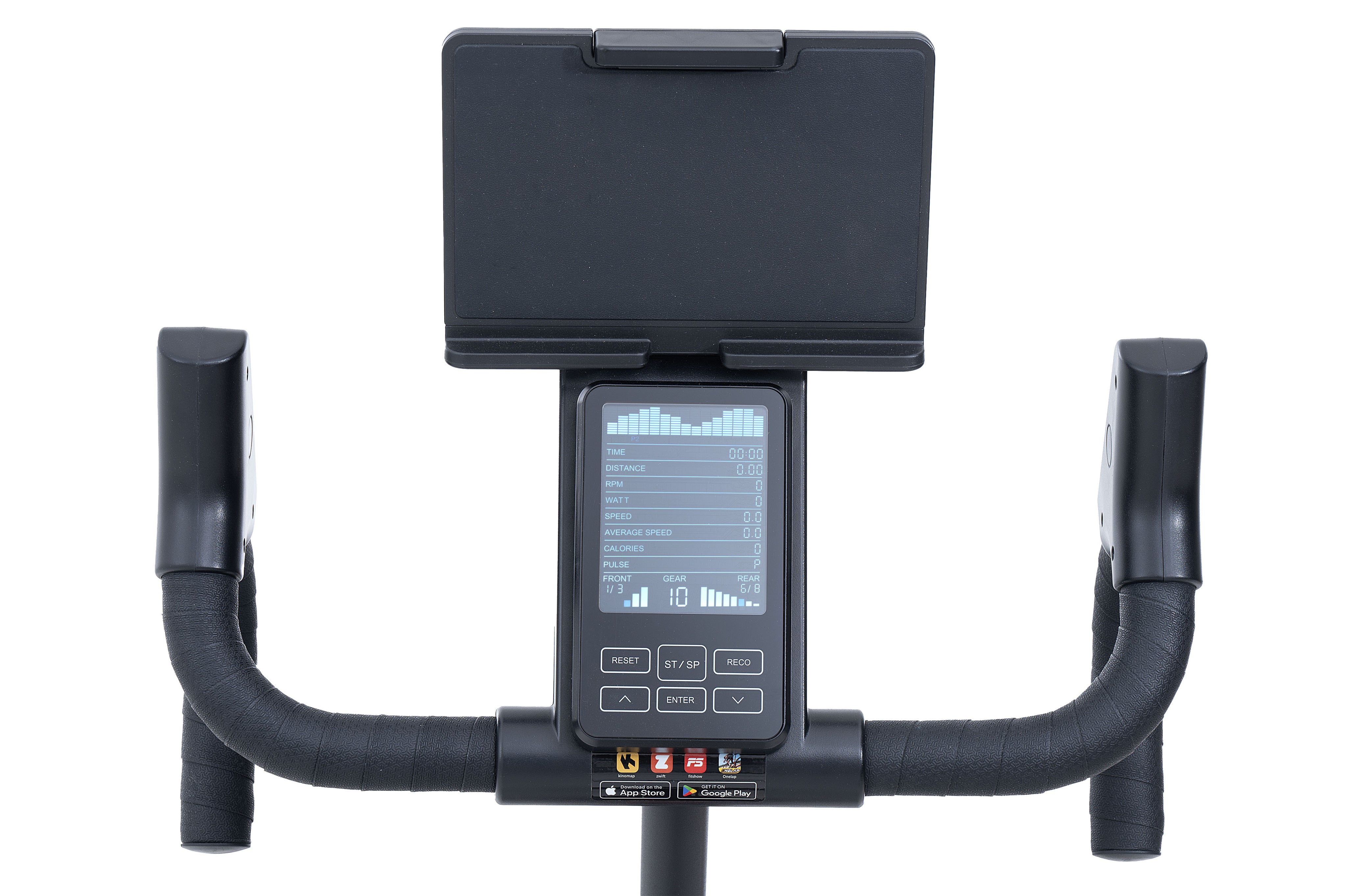 La nuova indoor bike JK 534 con ricevitore incorporato può collegarsi alle più importanti APP del mondo fitness (Zwift – Kinomap) per rendere più divertente l’allenamento, pedalando in giro per il mondo o sfidando amici su tracciati virtuali on-line, restando comodamente a casa!