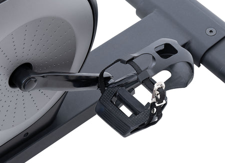 La nuova JK 534 è una spin bike elettro-magnetica di fascia media nel mondo home fitness che monta un sistema inerziale importante con una massa volanica di 20 kg (volano bilanciato), un freno magnetico a regolazione elettronica che genera una potenza massima di 550W (220W a 60 RPM) e una pedivella da 17 cm. Il gruppo freno della JK 534 viene gestito elettronicamente da un servo motore comandato da pulsanti sulla console e da leve sul manubrio (stile bici da corsa) che simulano la resistenza di un cambio MTB da 3 x 8 rapporti, per un piacere di pedalata fuori dai classici schemi. La pedalata della nuova spin bike JK 534 è sempre fluida e senza impuntamenti a tutte le andature, offrendo sempre bellissime sensazioni all’utilizzatore che sale a bordo. Per un ottimo comfort l’indoor bike JK 534 ha la regolazione in altezza della sella micrometrica da 155 a 195 cm su 12 posizioni (misura della gamba da 73 cm a 100 cm) e in profondità 10 cm, il manubrio “gravel” stile bici da corsa ricoperto con nastro racing, si regola in altezza da 155 a 195 cm. Queste regolazioni permettono di trovare sempre la migliore posizione in sella ad ogni utilizzatore, anche a persone molto alte! La sella racing design, anatomica, con foro centrale ed imbottitura pro, aiuta e migliora la sensazione a bordo garantendo confortevoli e lunghe pedalate senza fastidi. Il pedale racing antiscivolo in alluminio big-size con cinghietto ferma piede, aiuta a mantenere il corretto appoggio della scarpa in tutte le fasi della pedalata, anche in quelle più intense.
