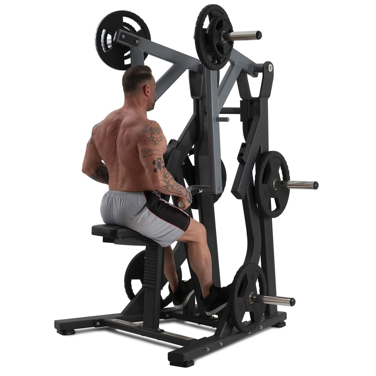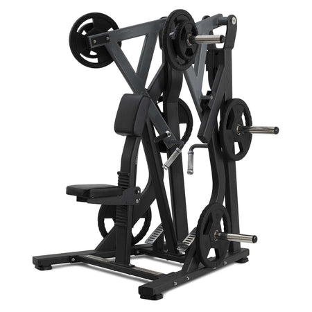 - Caratteristiche Il range di movimento è opposto alla pressione di declino iso-laterale consentendo un vero esercizio di spinta/trazione. Maniglia aggiuntiva centrale per consentire la stabilizzazione dell'utente durante gli esercizi con un braccio. Seduta comoda ed ergonomica regolabile verticalmente per adattarsi alle diverse dimensioni dell'utente. 6 perni portadischi per uno stoccaggio facile ed immediato.