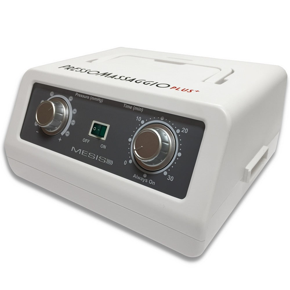 Pressoterapia PressoMassaggio® MESIS® PLUS+ con 2 Gambali è un nuovo modello per uso domestico semplice e trasportabile che offre un massaggio-linfodrenaggio con gli applicatori a tecnologia Sovrex©.