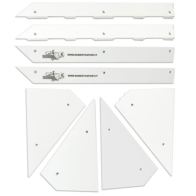 Serie completa di 4 angoli + 4 liste con serigrafia Roberto Sport. Compatibili con tutti modelli Rpnerto Sport con vetro, di serie su Champion e Competition con campo in vetro