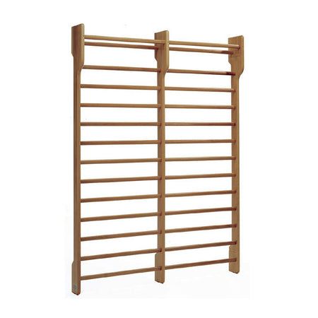Spalliera svedese realizzata in massello di faggio. Trattata superficialmente con trasparente protettivo.