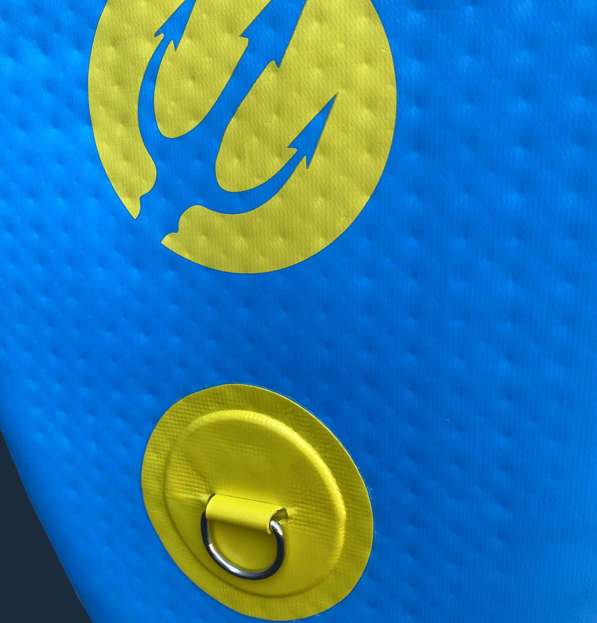 Costruzione a DOPPIO STRATO con TRIPLI strati in PVC di tipo militare sul piano e sui lati. Sul pianale un DOPPIO strato di telone in PVC ricopre il nucleo a due strati in DROP STITCH e PVC. I lati sono rinforzati con doppio strato in PVC. Le cuciture sono rinforzate con doppio rivestimento extra, rendendo la tavola SUP leggera, molto durevole e con le stesse performance di una tavola rigida.