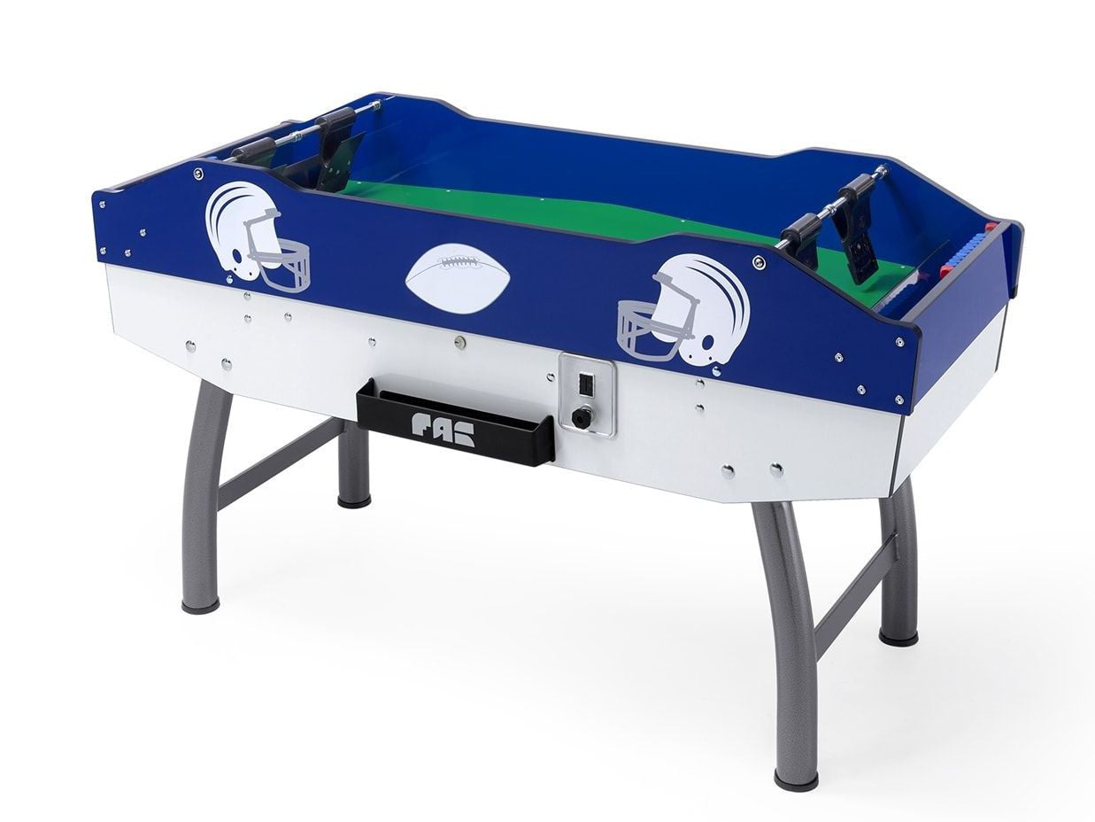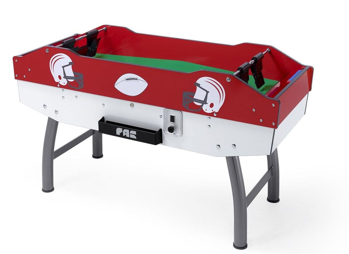 Il mobile robusto in legno multistrato da 22 mm ricoperto di laminato plastico, con una simpatica serigrafia sulle sponde lunghe, alta qualità di finiture, spatole indistruttibili in termoplastica, esclusivo sistema di chiusura e gambe in acciaio (verniciate antigraffio) appositamente curvate per conferire massima stabilità, sono alcune delle caratteristiche di questo appassionante gioco. E' disponibile nei colori rosso/bianco e blu/bianco.