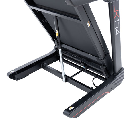 Il JK 174 è un tapis roulant elettrico richiudibile con un potente motore da 3.75 HP che permette di raggiungere una velocità di 22 km/h, con una inclinazione su 15 livelli con regolazione motorizzata.
