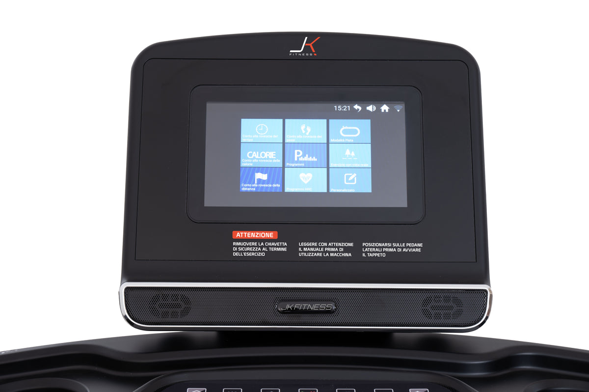 Il JK 194 è un tapis roulant elettrico richiudibile con un motore professionale AC (corrente alternata) da 4.0 HP che arriva fino a 22 km/h, con una inclinazione di 15 livelli a regolazione elettronica.