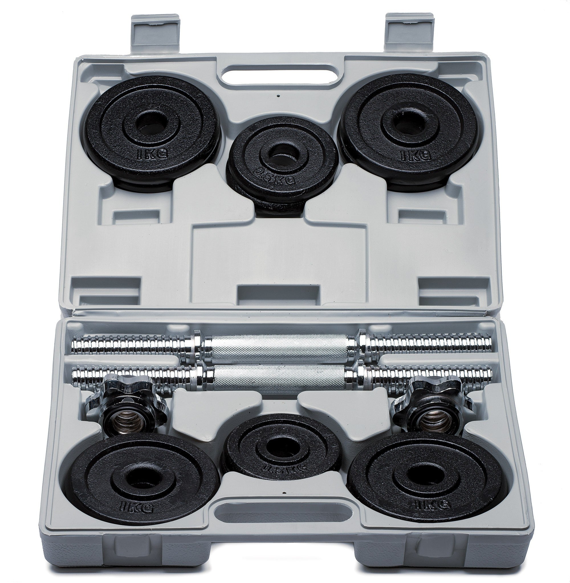 - 2 manubri filettati con chiusura a vite ø 25 mm, peso 2,5 kg